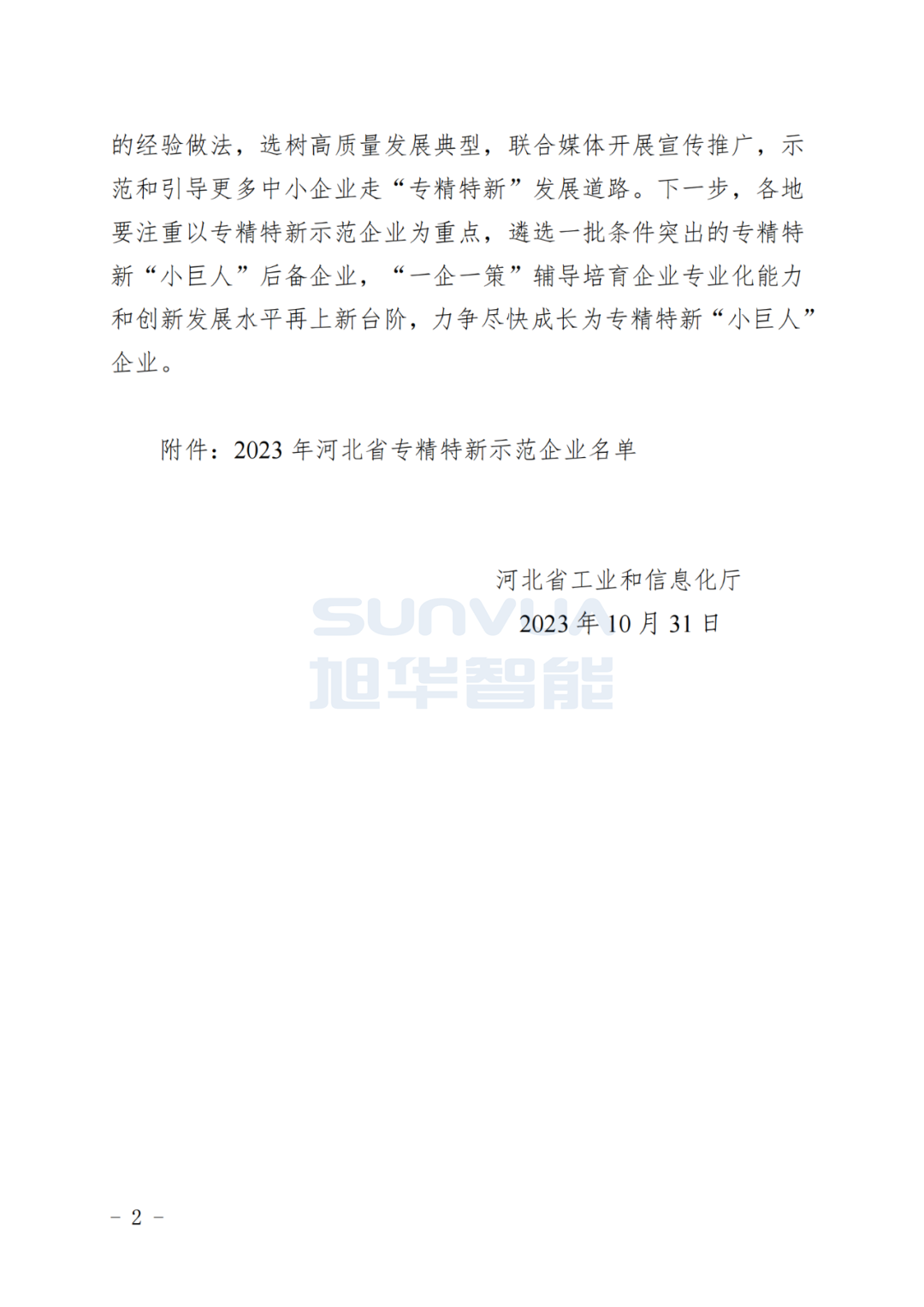 近期,河北省工业和信息化厅公布了《关于公布2023年河北省专精特新示范企业名单的通知》,唐山利来国际智慧科技有限公司名列其中,凭借过硬的专业技术创新能力,荣获河北省“专精特新”示范企业称号。